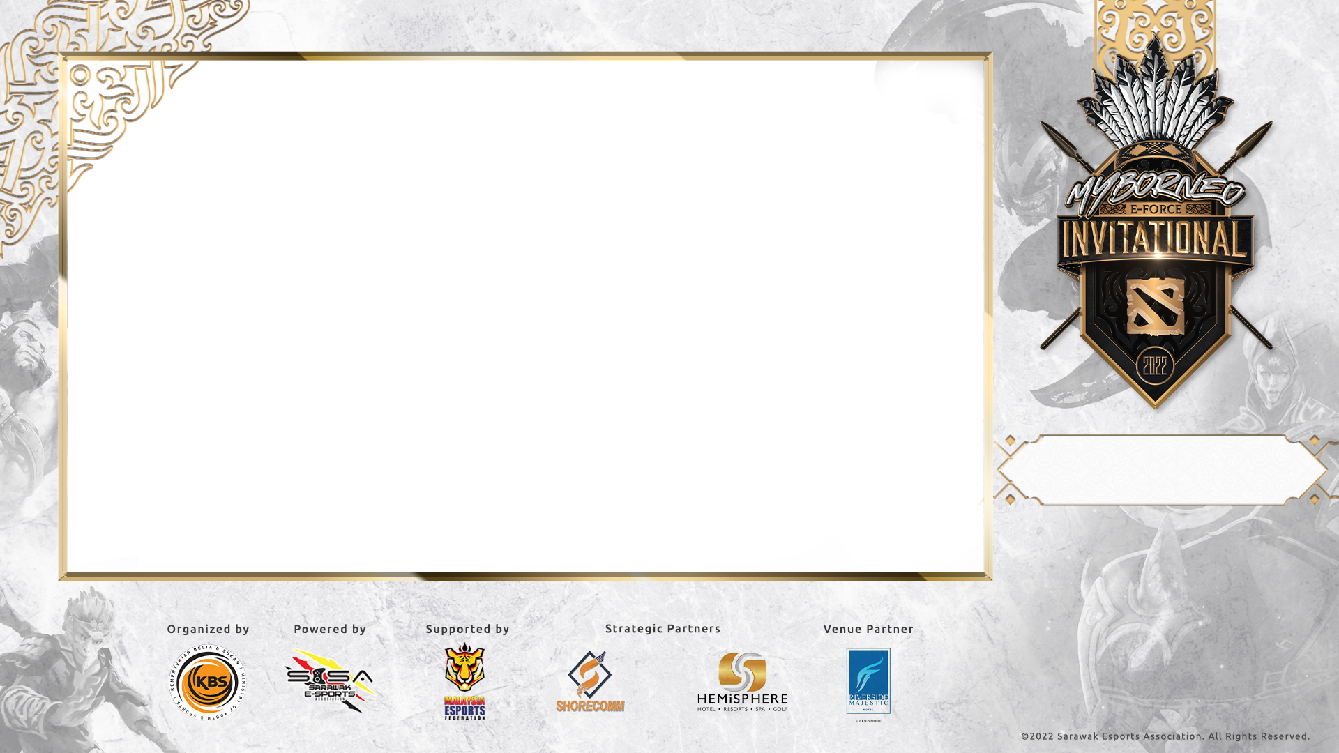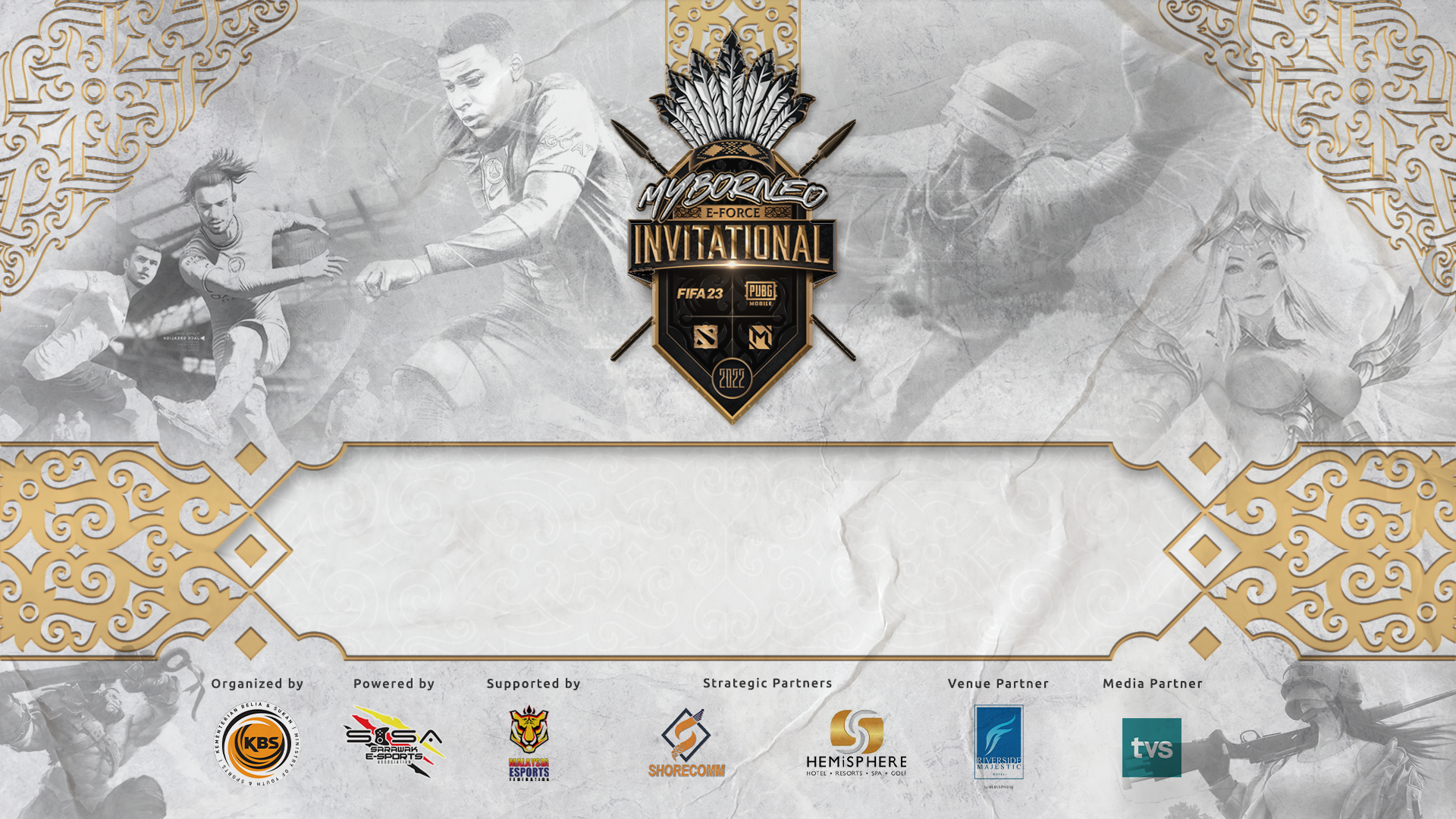 MyBorneo E-Force Invitational Esports Tournament 2022 Client : Sarawak Esports Association (SESA) Ministry of Youth & Sports Malaysia (KBS)